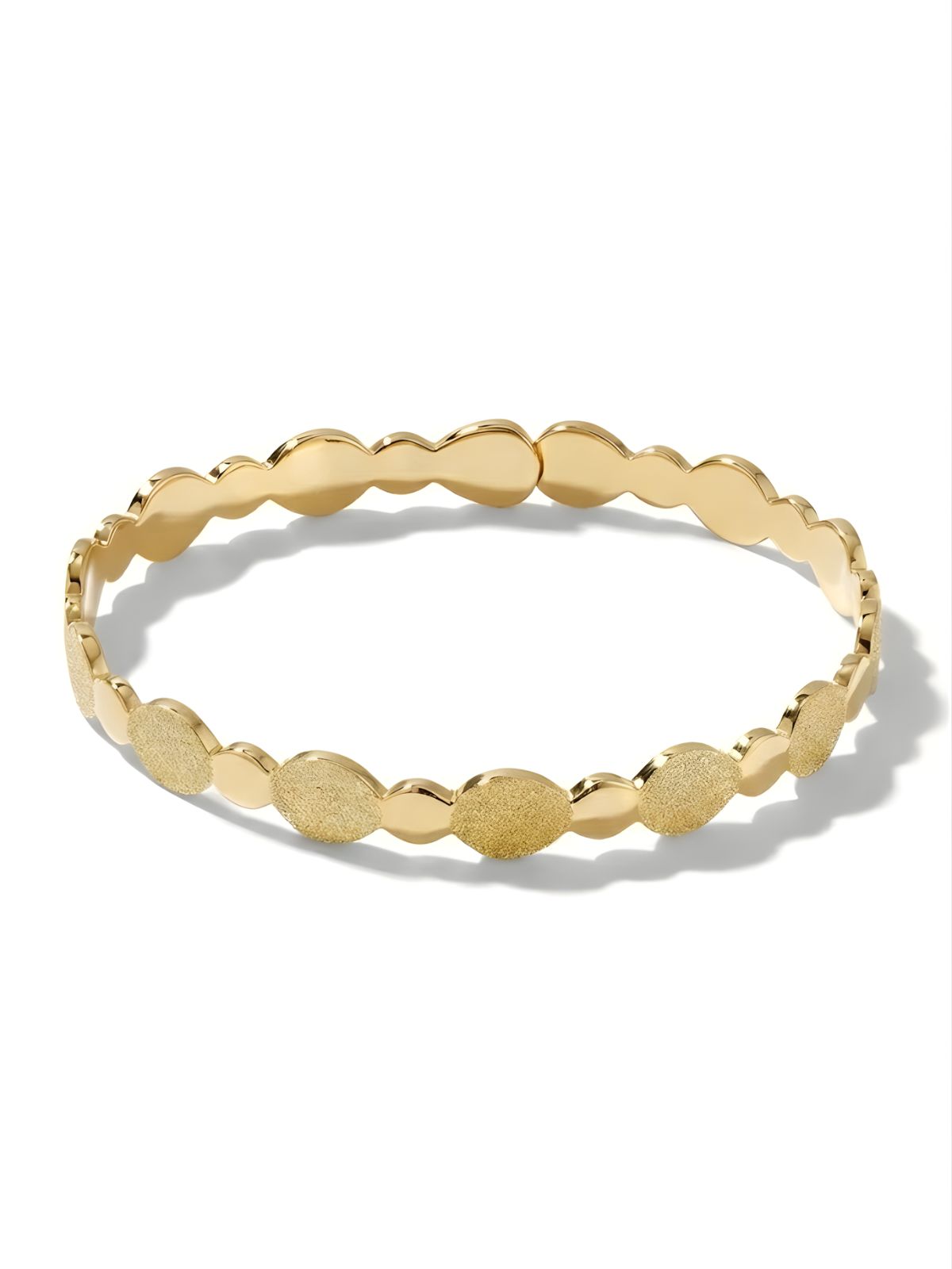 Brățara fixă MARGARETĂ din aur 14K este inspirată de fragilitatea și puterea unei margarete. Această brățară surprinde frumusețea naturală a petalelor într-un joc armonios de texturi – luciu fin și efect sablat, alternate cu măiestrie.